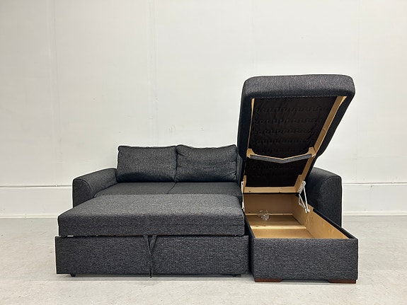 - Sohvan saa levitettyä vuoteeksi, ja divaanin alla säilytystilaa.