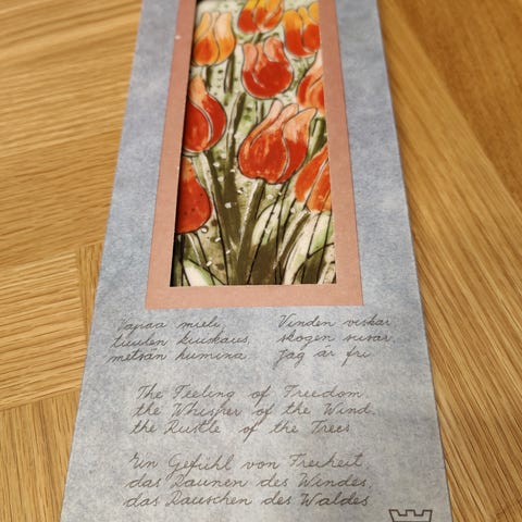 Punaiset tulppaanit, Heljä Liukko-Sundström. Nouto 03250 Vihti tai 02650 Espoo.