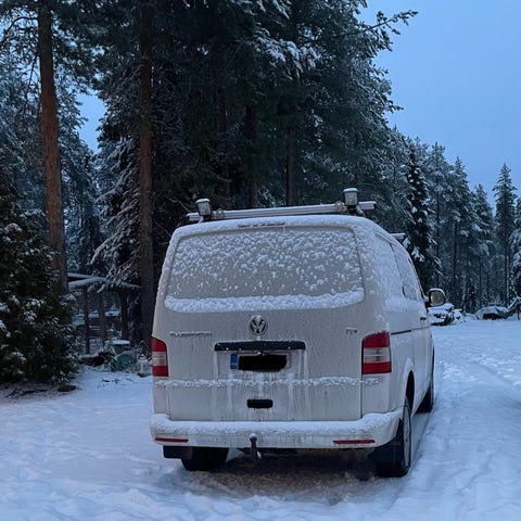 Volkswagen Transporter T5 pariovellinen malli. Ostoslistalla valorauta, aurinkolippa, kylkiputket, takaspoileri