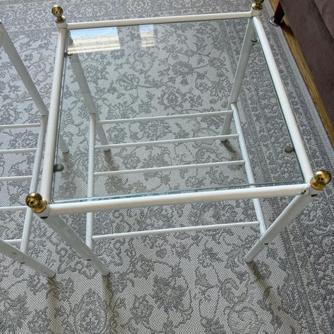 Myydään kaksi yöpöytää Pöydän päälinen on lasia ja jalat metallia