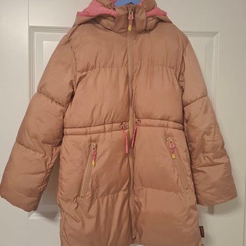 Myydään lasten kevytuntuvatakki 140cm. Toisessa kyynerpäässä pieni reiän alku.