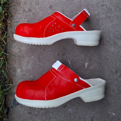 Sievi pistokkaat / työjalkineet valkoisella värillä, koko 39. Kenkien materiaali on nahkaa, ja ne on suunniteltu tarjoamaan mukavuutta ja kestävyyttä. Kenkien pohja on musta ja uritettu, mikä parantaa pitoa. Mallissa on säädettävä remmi takaosassa, jonka saa myös ylös