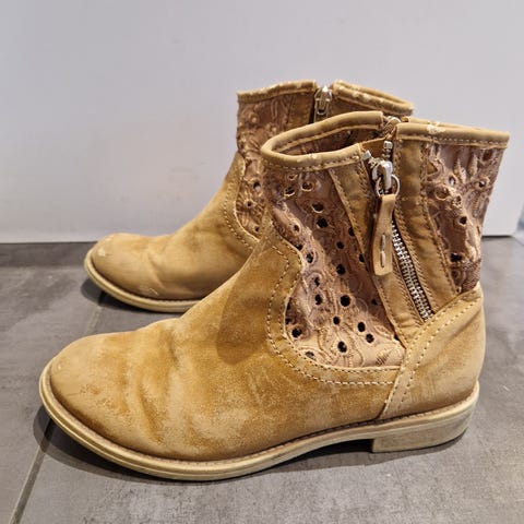 Siistit tekonahkasaappaat , pohja ehjä ja karkeakuvioinen. Nämä bootsit ei ihan talvipakkasille, mutta siistit muuhun käyttöön.