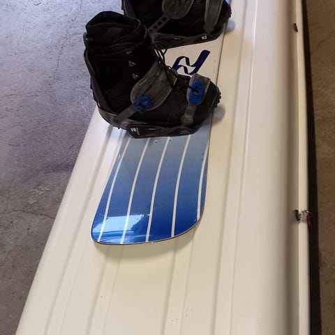 Vanha lumilauta sekä kengät (pohjallinen 26cm).