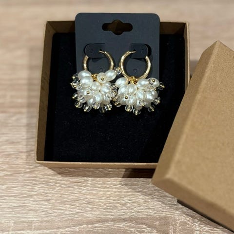 Ruskeat pienet helmirypäs-korvakorut, kultainen rengas, allergisoimaton. Kokonaispituus noin 2,5cm.