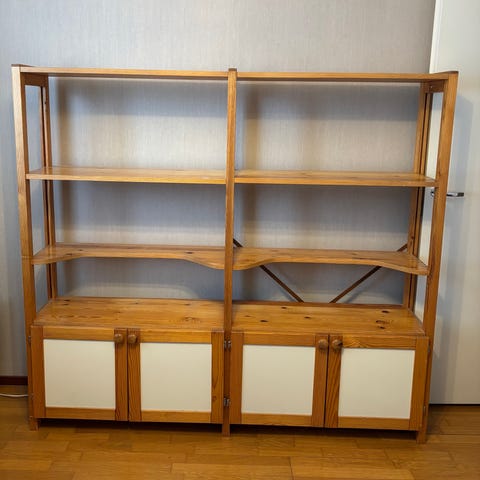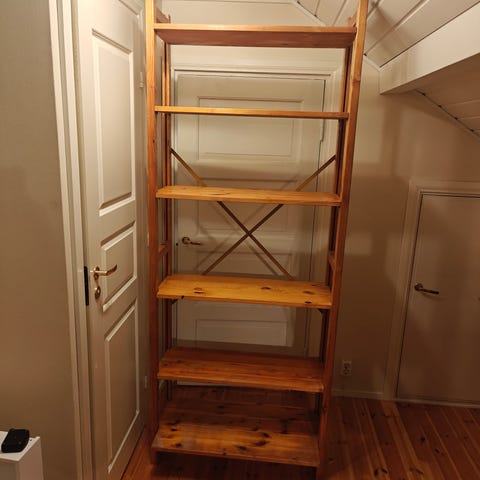 Vanhemman tuotannon Lundian puinen hylly myytävänä. Normaalista poikkeava kannalle. 3kpl kannakkeita tulee varalle. Ristikko mukana. Yleiskunto ikäisekseen hyvä. Muutamia ajan tuomia jälkiä hyllyissä ja päädyissä. Pari ruuvia asennettu tukemaan hyllyn runkoa.