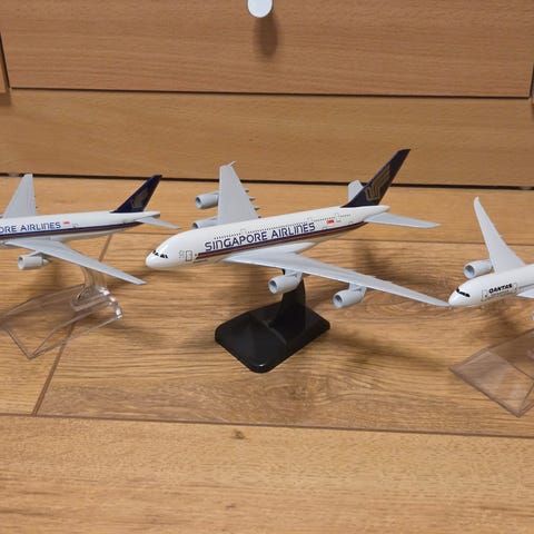 Myynnissä kokoelma (10 kpl) pöytämalleja lentoyhtiöiltä (Spanair, Malév, Britannia Airways, Airtours ym.), lisäksi Finnairin vanhempi lomalentomalli ja EL AL jumbo (747-tyyppinen) josta puuttuu yksi moottori. Useimmat mallit muovia, osa ns. display-standeilla. Kunto vaihtelee: joistain naarmuja ja pienempiä kulumia, osa ilman alkuperäispakkausta.