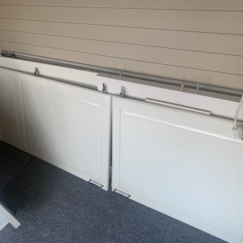 Kuvien Ikea Kajak pyörivä hyllykaappi peilillä; sivussa myös naulakkokoukut. Nouto Postipuistosta (Pohjois-Pasila).