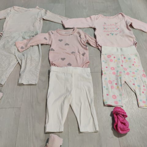 Vaatepaketti koossa 62-68. Hyväkuntoiset vaatteet, 2 bodya jäi käyttämättä ( vain kerran pesty) ja muutkin vaatteet jäivät vähäiselle käytölle. Sukat kaupan päälle. Savuton ja eläimetön talous.
