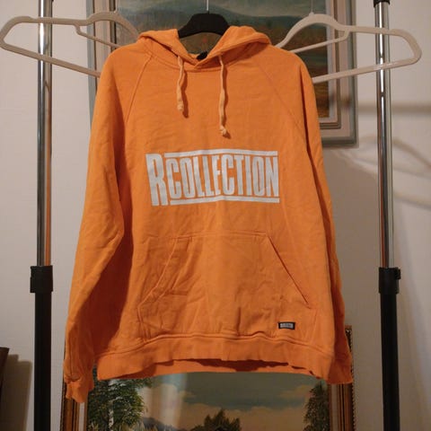 Hyväkuntoinen, vähälle käytölle jäänyt R-Collectionin klassikko unisex huppari, muuten erinomaisessa kunnossa, mutta kello hangannut vasemman hihan suuta ja se hieman rispaantunut (ks. kuva), menee noin tai pienellä fiksauksella saa tosi siistiksi.