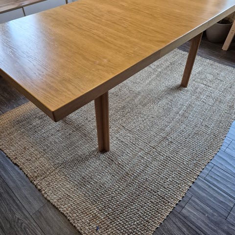 Pöytä on ostettu noin 3 vuotta sitten ja ollut käytössä yhden perheen ruokapöytänä. Hp 1500 €.