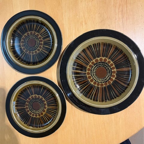 Arabia, Susan- kahvilautaset 8 kpl 1960-luvulta. Kaikki lautaset ovat ehjiä ja käyttökuntoisia. Yhdestä lautasesta puuttuu leima.