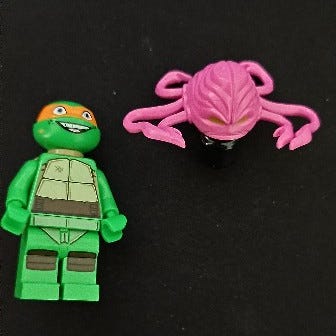 Hyväkuntoinen Lego 79100 tmnt Kraang Lab Escape, figuureista Michelangelo puuttuu, muuten kaikki osat ja ohje.