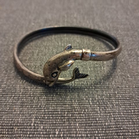 Antiikkinen delfiini rannekoru ja sormus. 925 leimattu.