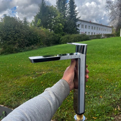 Korkea pesuallashana Oras Stela on tyylikäs malja-allashana, jossa on kiinteä juoksuputki ja joustavat kytkentäputket. Hanassa on integroitu poresuutin, jonka kulmaa voidaan säätää veden roiskumisen estämiseksi. Korkeutensa ansiosta hana sopii hyvin malja-altaille.