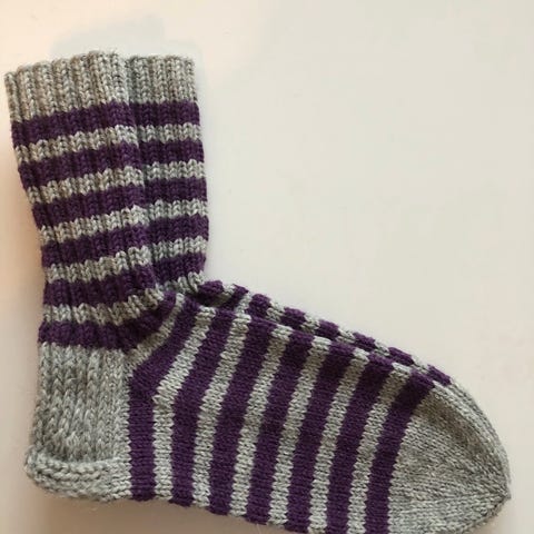 Uudet Vihreä/ harmaa raita villasukat 38, Seitsemän veljeksen langasta vahvistetulla kantapäällä.