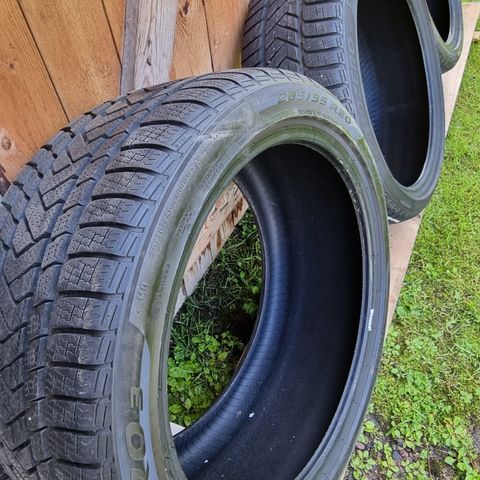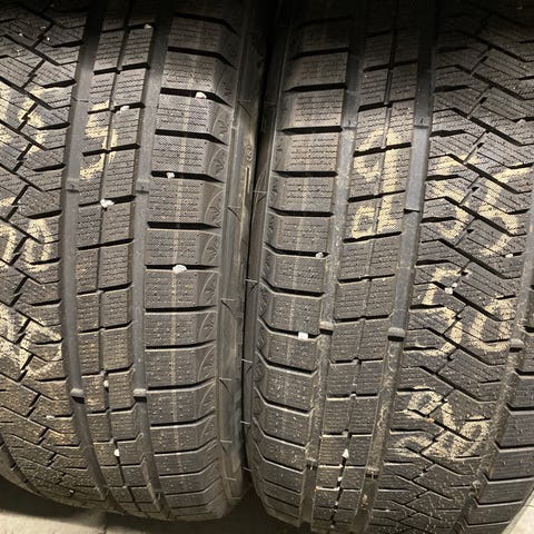 Roadmarch WinterXpro kitkat. 6 mm kulutuspintaa. Yhdessä renkaassa reunassa vähän enemmän kulumaa. Tesla 3:ssa olleet alla