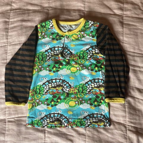Tyttöjen paidat, koko 92. Kokolappujen merkinnät kahdessa paidassa suurempaa, mutta kaikki vastaavat kokoa 92. Raidallinen Phister & Philina - paita paksumpaa velouria. Keltaisen collegepaidan kuvassa kulumaa, kaksi muuta paitaa tosi siistit. Ei muuta huomautettavaa, kaikki meille uutena ostettuja.