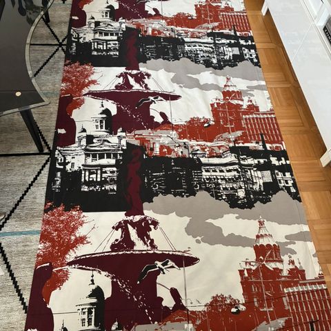 Vain hetken aikaa käytetty upea Vallila Miranda verho 1 kpl. Pituus 246 cm ja leveys 145 cm. Upeat kirkkaat värit! Rypytysnauha. Käy myös pöytäliinaksi. Kuosin suunnittelija Marjatta Metsovaara. 83% puuvilla, 17% polyesteri. Viimeisen kuvan keskellä näkyy helmassa oleva huomaamaton pieni tahra tai värivirhe, ei käytössä merkitystä, on niin huomaamaton.