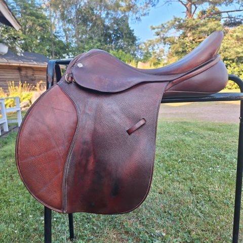 CWD 2GS estesatula, istuin 17,5, väri ruskea, Leveys M, siivet 2C. Satulassa hyvä lapa-, säkä ja selkärankatila.