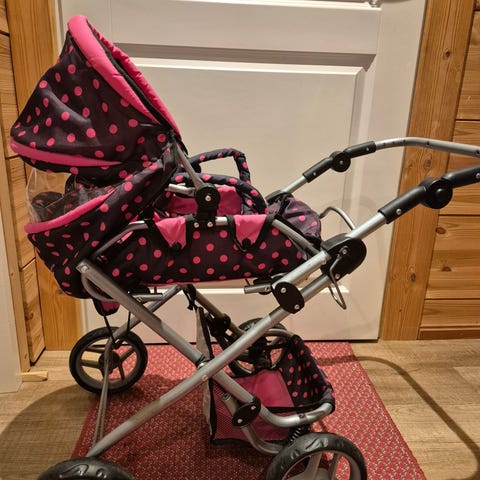 Nukenvaunut, mukaan prinsessa hoitolaukku, tähtityyny ja vauvanpeitto. Käytön jäljet näkyvät renkaissa ja työntöaisassa. Muuten rattaissa ei moitteita. Vaunuja käytetty/ säilytetty sisällä, mutta välillä käyty ulkona vaunukenkillä :)