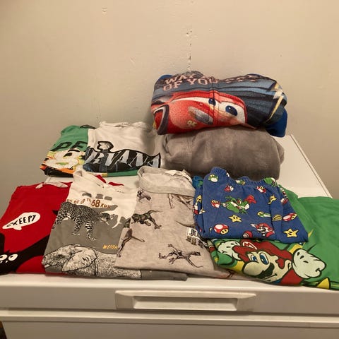Hyväkuntoisia ja ehjiä, yhden lapsen käytössä olleita vaatteita. Pesty hajusteettomalla pesuaineella. Eläintalous.