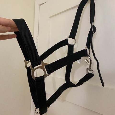 Torista ostettu x-full kokoinen nylonriimu, ollut käytössä puuhevosella mutta säilytetty sisällä. Metalliosissa hieman ruostetta/kulumaa. Vain nouto Tampereelta Hervannasta :)