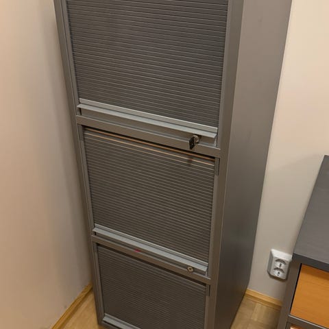 Martelan neljän rullakon lipasto, jonka saa lukkoon. Kunto hyvä. Pyörillä, eli helppo liikutella.