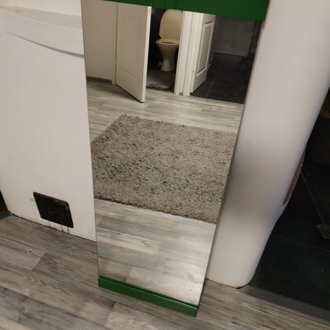 Siisti Mäkisen Kuvastin Finnmirror peili -80 luku. 40 x 90 cm peilin koko, reunojen kanssa 40x100 cm.