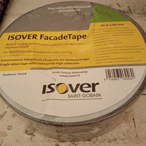 1 paketti jäljellä tuulensuojaeristettä, Isover Facade, 75x1200x1800mm, 6.48m2/pkt