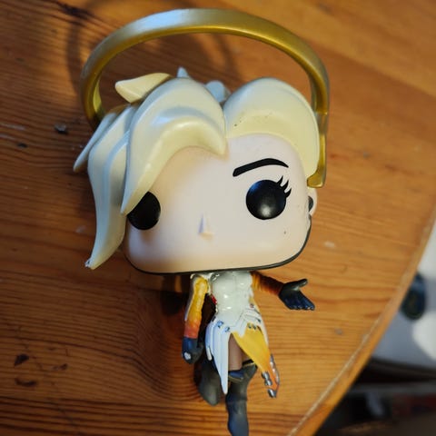 Uuden veroinen Symmetra Funko Pop, Overwatch pelistä. Figuuri on otettu kerran laatikosta ja laitettu sitten sinne takaisin. Käytännössä siis uuden veroinen. Laatikossa on pieni repeämä.