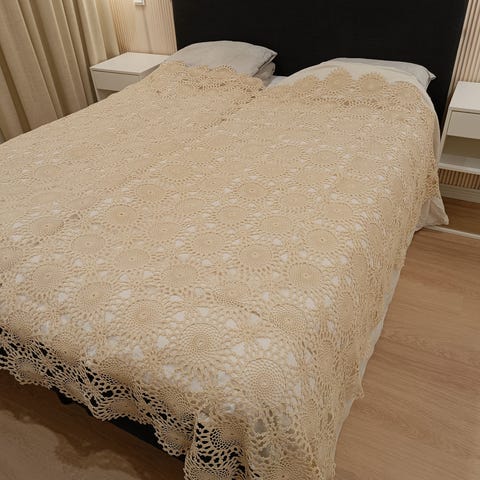 Virkattu päiväpeitto koko 255*245. Erittäin laadukkaasti tehty.