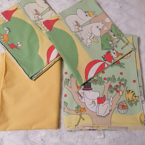 Myydään söpöt Finlaysonin Elefantti/Norsu keltavalkoisesta kankaasta ommellut pussilakana, sisällä vihreä fleecepeitto ja pieni tyyny, jossa saman kuosin tyynyliina. Olleet vaunupeittona ja tyynynä. Muuten siistit, mutta tipahtivat kerran ja peiton reuna jäi rattaiden väliin, niin siitä jäi tumma jälki, näkyy kuvissa.