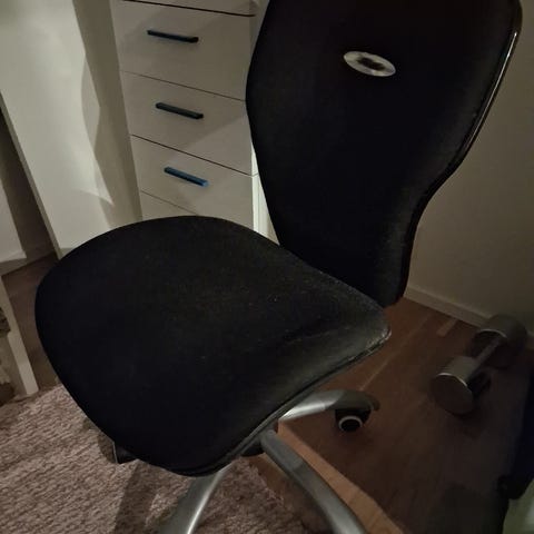 Toimistotuoli mustalla keinonahkapäällysteellä. Tuolissa säädettävät ominaisuudet ja tukevat käsinojat. Sopii toimistokäyttöön.