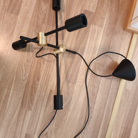 Kattolamppu Northlight, metallinen varjostin, kangaspintainen sähköjohto, lampun maksimiteho 60 W. Normaali E27 kanta polttimolle. Sähköt voi kytkeä lamppuun joko kattopistokkeesta tai sokeripalasta.