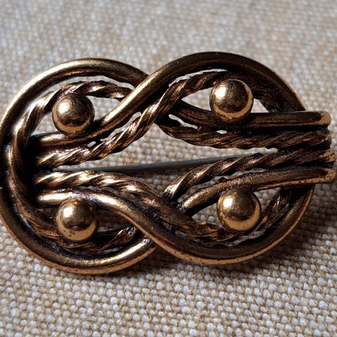 Myynnissä nyt vanhaa Kalevalaa , Kaunis Runoratsu-rintakoru. Suunnitellut Kaisaleena Mäkelä.
