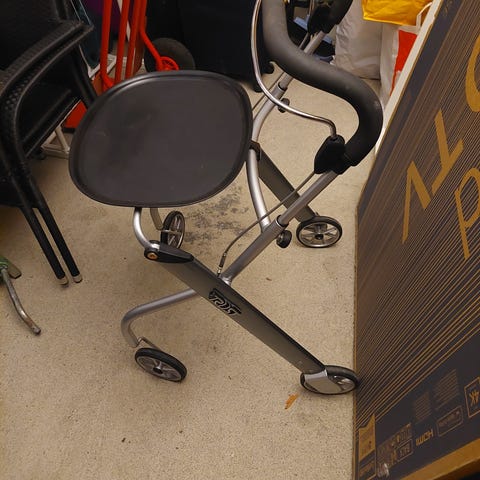 Actimo Basic Rollaattori musta, kokoontaittuva rollaattori. Sopii sisä- ja ulkokäyttöön, kevyt runko ja neljä pyörää helpottavat liikkumista. Materiaali metallia ja muovia. Soveltuu henkilöille, jotka tarvitsevat tukea kävelyyn. Myydään rollaattori!!