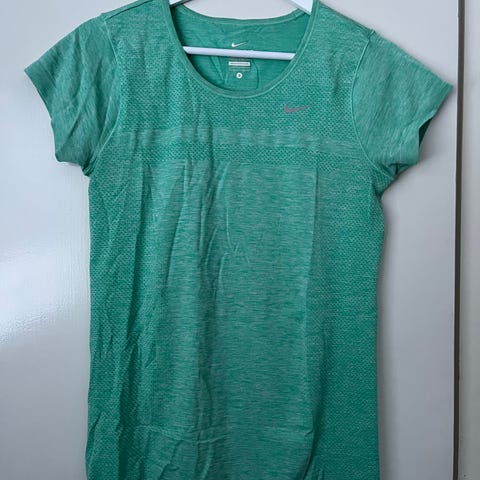 Nike Pro juoksupaita naisille, koko S. Paita on väriltään keltainen ja valmistettu hengittävästä materiaalista, joka soveltuu juoksuun ja muuhun urheiluun.
