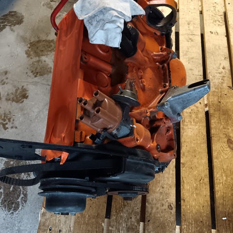 Volvo B18 moottori. Alasiivasta pyörittämällä pyörii, muuta tietoa kunnosta ei ole, ei myöskään vuosimallista. Vaihdossa voin kelpuuttaa huoraportaat 240 Volvoon.