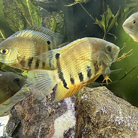 Myydään kolme parin kuukauden ikäistä helmikirjoahvenen poikasta. Ikää pari kk. Sukukypsiä noin 6kk iässä, jolloin noin 10-12cm pituisia ja värikkäitä. Ehkä uros ja kaksi naarasta (ei voi vielä varmaksi sanoa). Omia kasvatteja. Vanhemmat violetinsininen ja keltaoranssi.