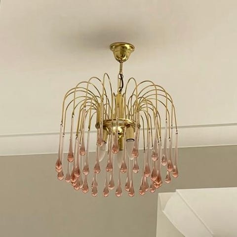 Italialainen Murano kattokruunu. Kaikki osat tallella. Pieni palanen puuttuu, näkyy viimeisessä kuvassa johdon kohdalla.
