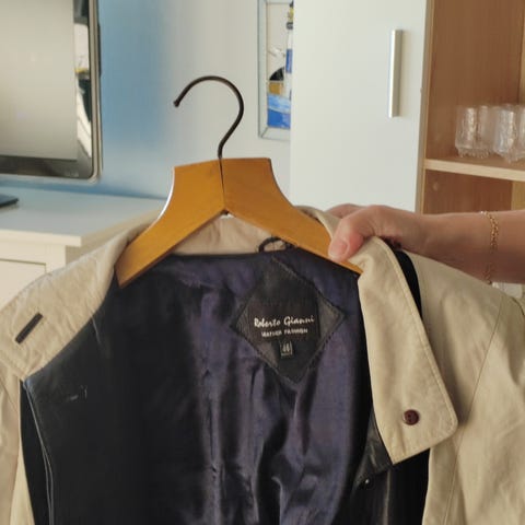 Musta pitkä nahkatakki, kotimainen