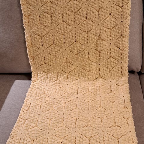 Parisängyn virkattu, luonnonvalkoinen päiväpeitto. Puhdas.