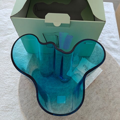 Aalto maljakko, duo. Ultramariininsininen-valkoinen. 160 mm. Kuin uusi, rajoitettu erä 429/4000. Pohjassa lukee Iittala. Alvar Aalto, Savoy. Laatikko olemassa ja kuuluu kauppaan.