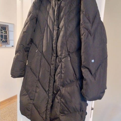 Naisten pitkä Joutsen-untuvatakki. Koko XXL. Väri musta. Hyväkuntoinen ja siisti (pesulan jäljiltä).