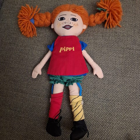 Myydään 15 cm korkea Peppi Pitkätossu pehmolelu, hyväkuntoinen.