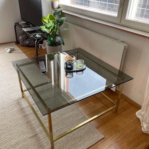Vanha hyväkuntoinen messinki/lasipöytä. Vain nouto. Myös tarjouksia kuunnellaan.