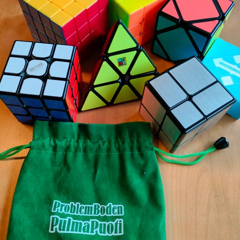 Aidot Rubikin kuutiot: 2x2, 3x3, 4x4 ja 5x5. Ehjät ja toimivat, isoin vähän takertelee mutta oli uutena samanlainen. Toimii kun kääntää varovasti.