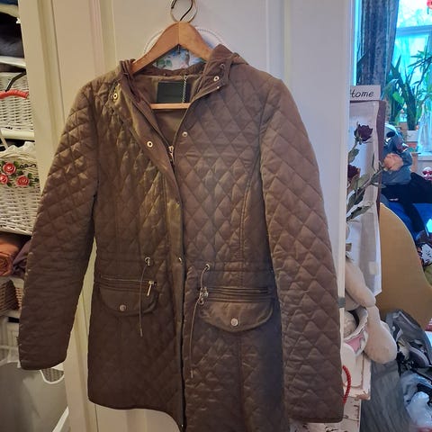 ZARA toppatakki. Musta/ valk käärmekuvio. Koko Xl, pieni sellainen. 2x vetoketjulliset sivutaskut, irrotettava keino turkis huppu, hihansuut vetoketjut. Käyttämätön, kuin uusi