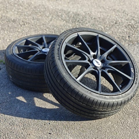 Renkaat ollu E92 alla viime kesän. Kumet lähes vaihtokunnossa ainakin kahdessa renkaassa. Vanteissa pieniä osumia, mutta ei halkeamia.